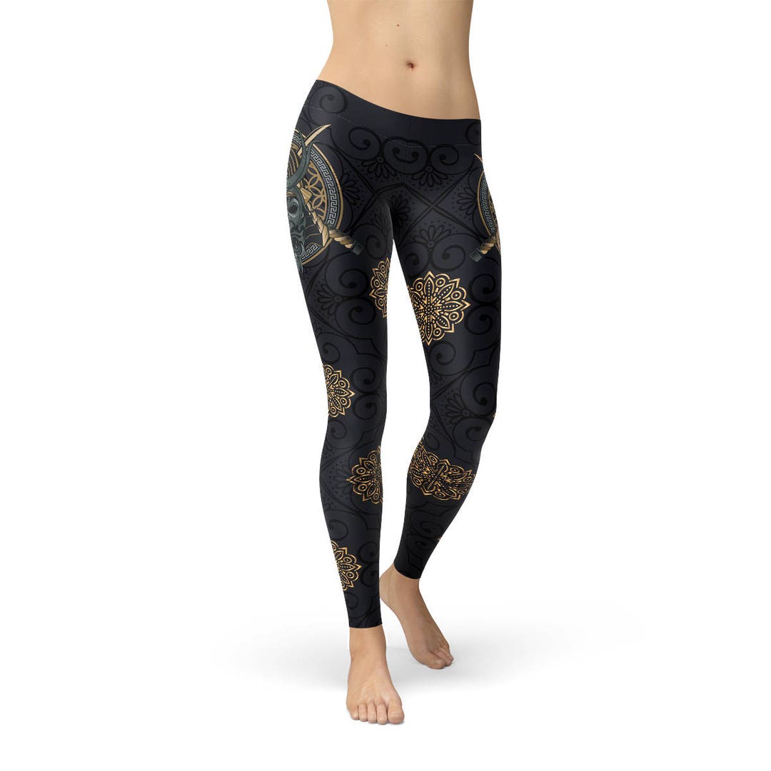 Black Japanese Samurai Leggings Samurai Mask Tattoo Designs Etsy Uk